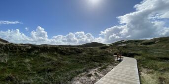 Hier gilt, der Weg ist das Ziel! Der malerische Weg durch die Dünen und das Heidekraut ist einfach traumhaft! Weit weg von der Hauptstraße, kann man die Natur pur mit allen Sinnen genießen. Hin und wieder öffnet sich der Blick auf das weite Meer.